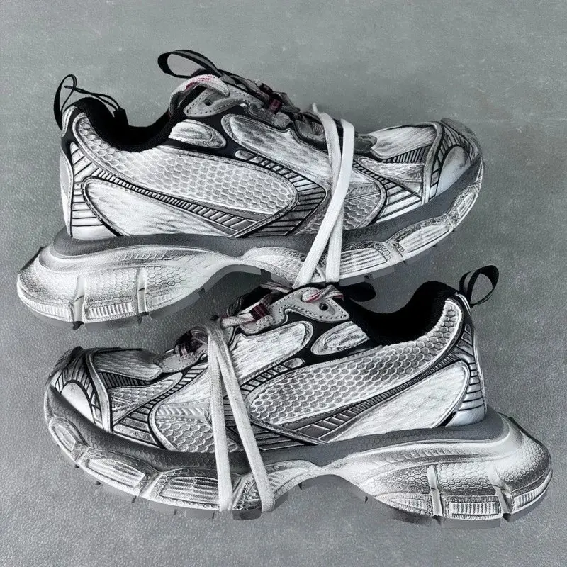 Balenciaga retro-style silver-gray sports shoes