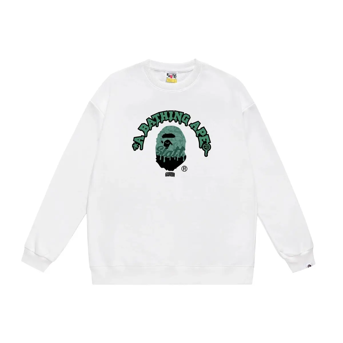 Before Pandabuy returns, we can purchase from other agent platforms:BAPE Ape Man series trendy white sweatshirt,Currently, excellent agent platforms include Kakobuy, CNFans, and ACBuy.