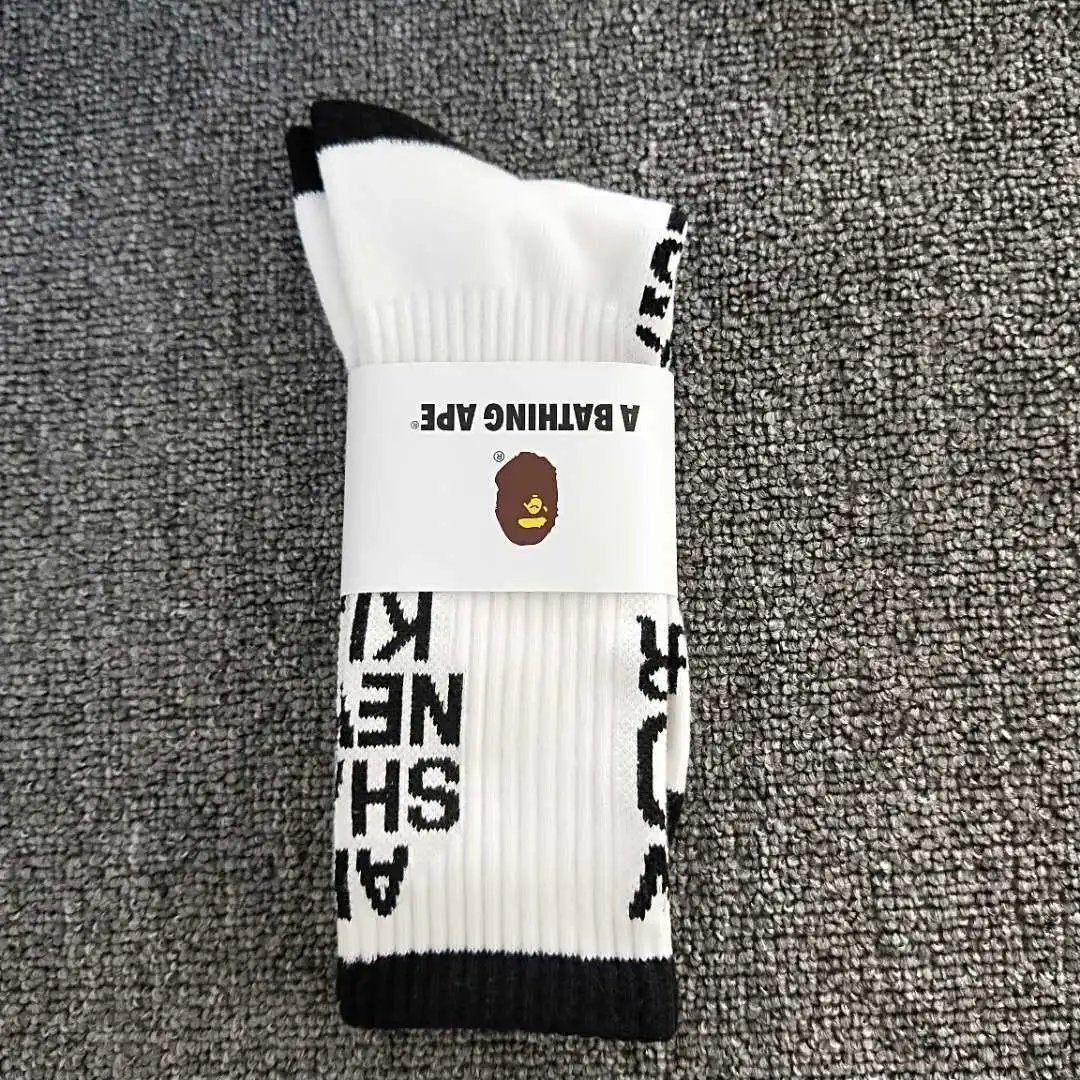 Before Pandabuy returns, we can purchase from other agent platforms:Bape letter – style trendy brand black – and – white socks,Currently, excellent agent platforms include Kakobuy, CNFans, and ACBuy.