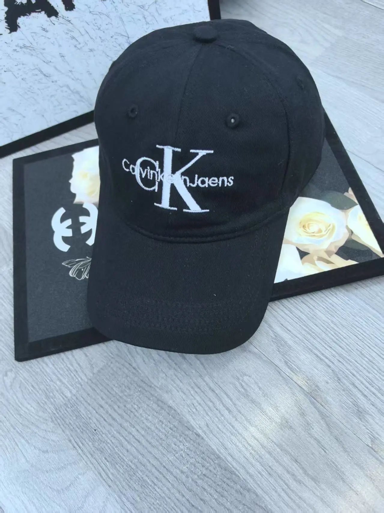 CK minimalist style black baseball cap