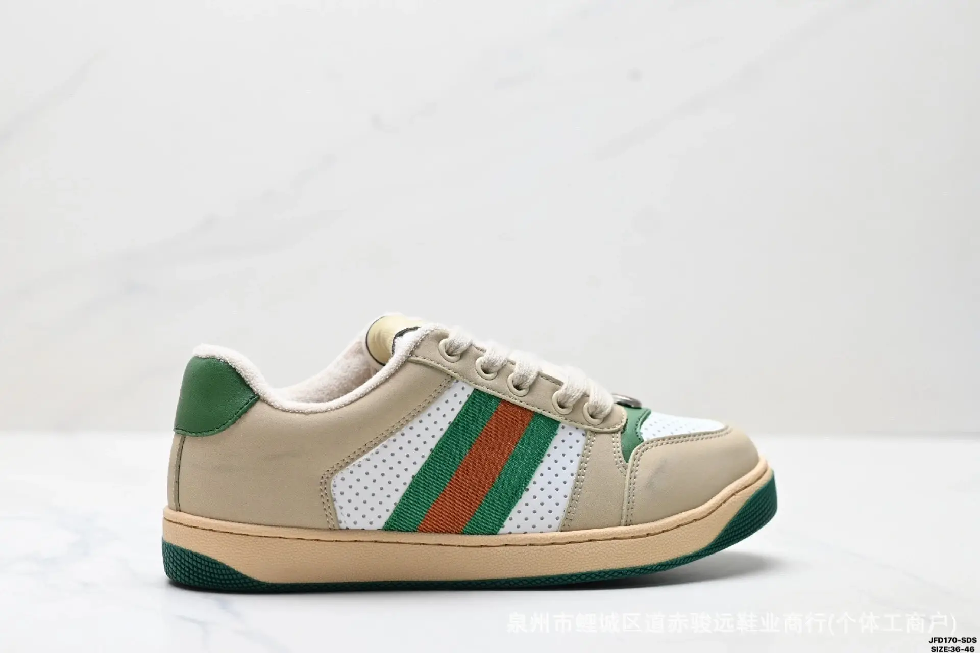 Before Pandabuy returns, we can purchase from other agent platforms:Gucci retro-style green, white and brown sneakers.,Currently, excellent agent platforms include Kakobuy, CNFans, and ACBuy.