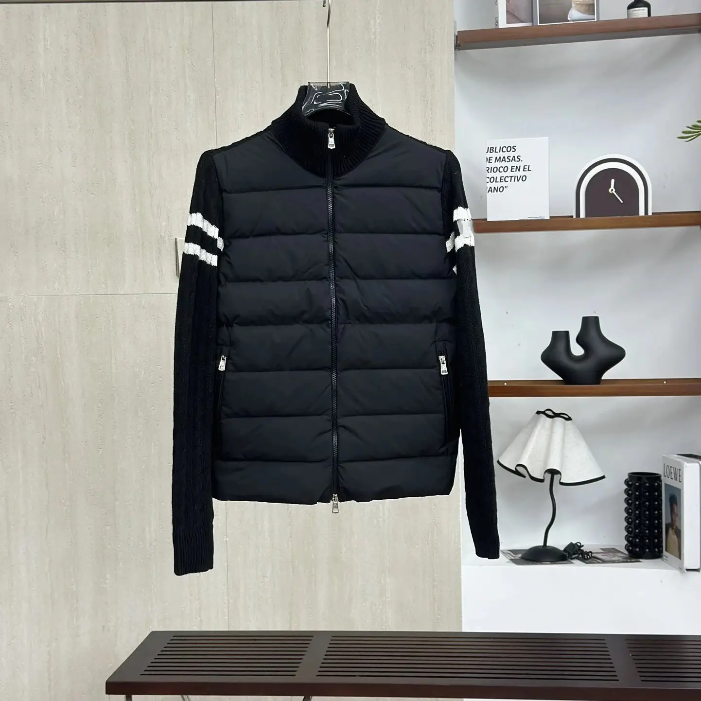 Moncler Black and White Trendy Down Jacket