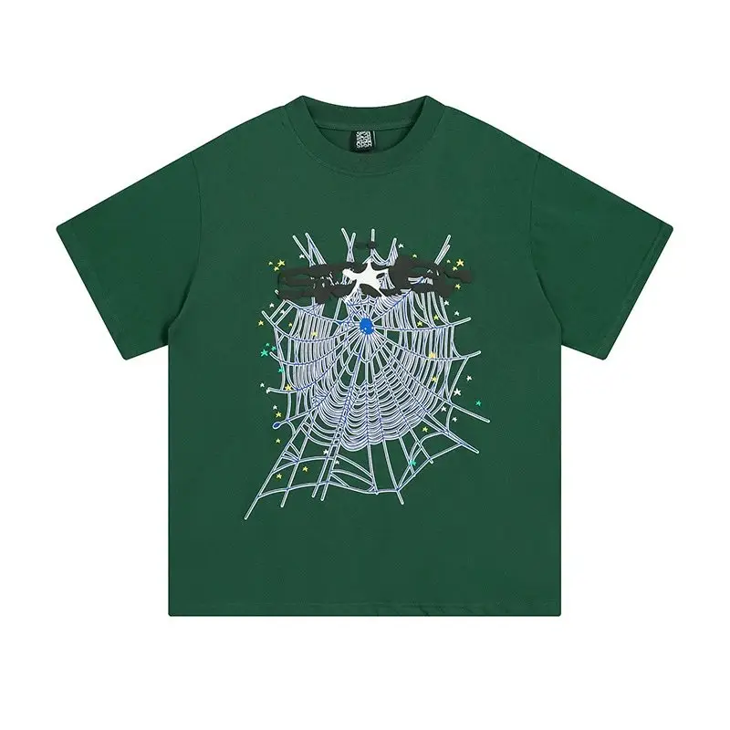 Before Pandabuy returns, we can purchase from other agent platforms:Sp5der cobweb print style green T-shirt,Currently, excellent agent platforms include Kakobuy, CNFans, and ACBuy.